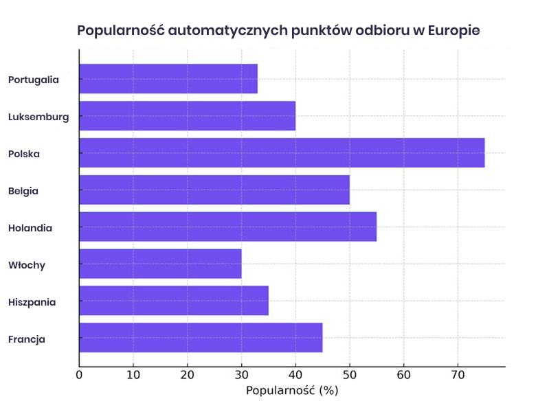 Wykres przedstawiający popularność automatycznych punktów odbioru w Europie.