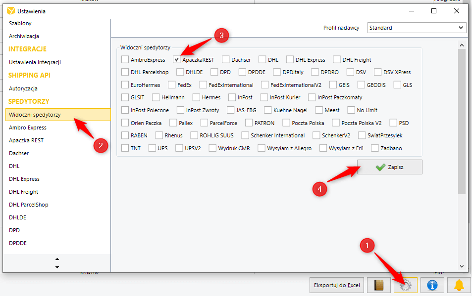 Aby po wybraniu dokumentu dostępny był spedytor Apaczka: