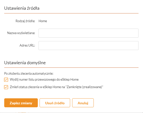 Aby status zlecenia w Państwa sklepie uległ zmianie oraz numer listu przewozowego został przypisany do zlecenia należy zaznaczyć checkboxy dostępne w edycji źródła importu.