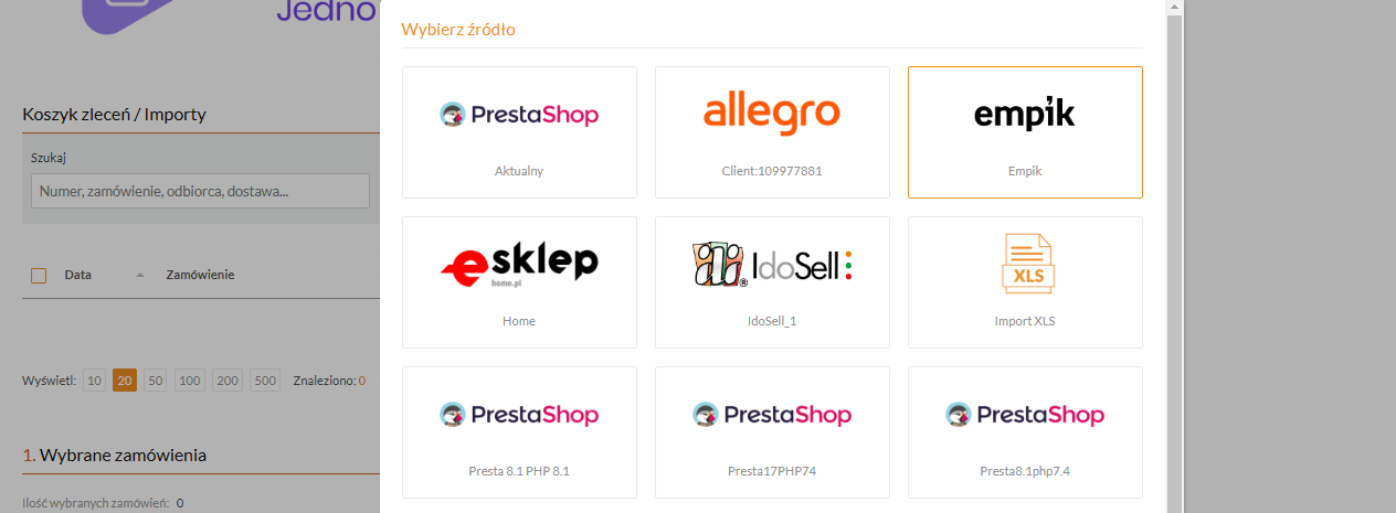 Utworzona integracja pozwala na import zamówień ze sklepu poprzez platformę apaczka.pl. Aby dokonać importu, wykonaj następujące kroki: