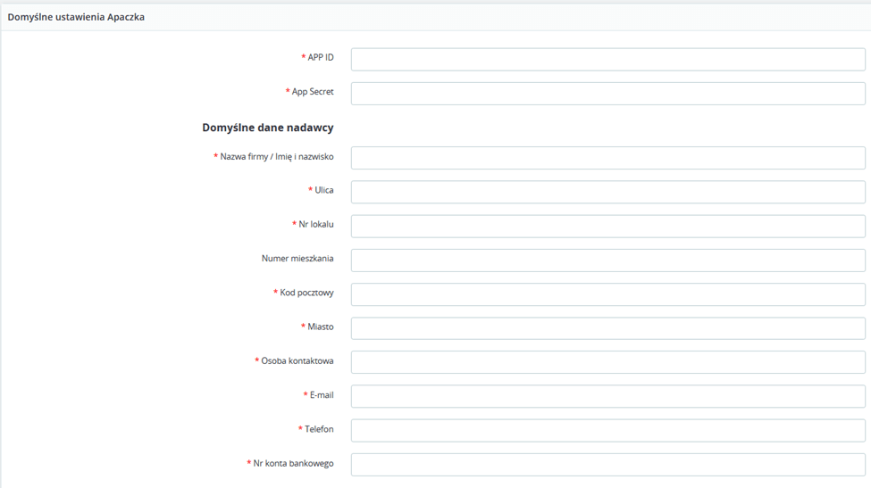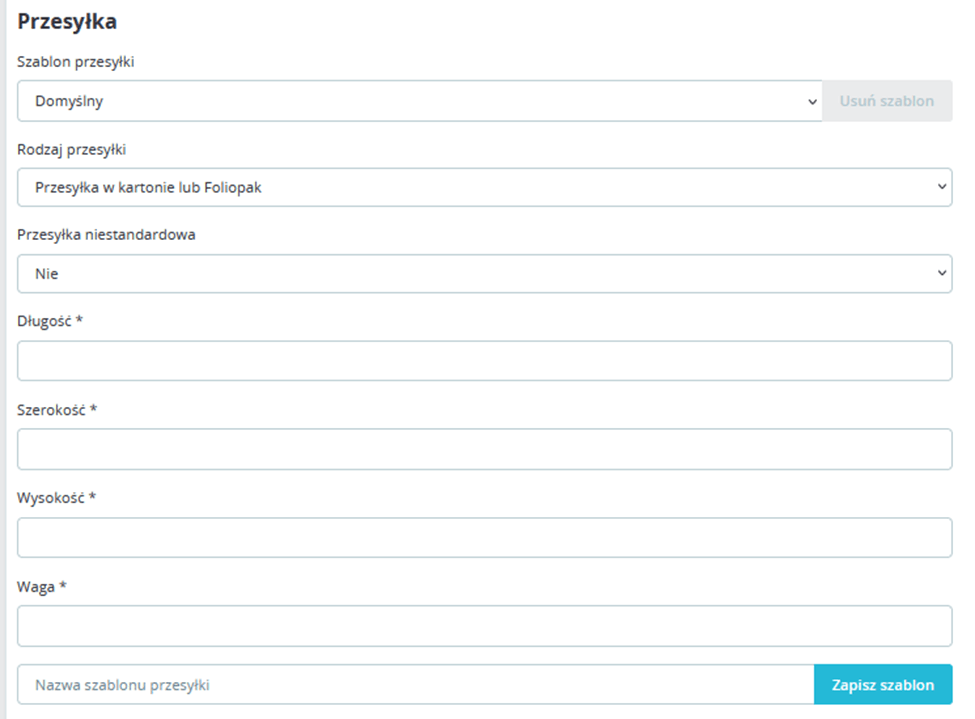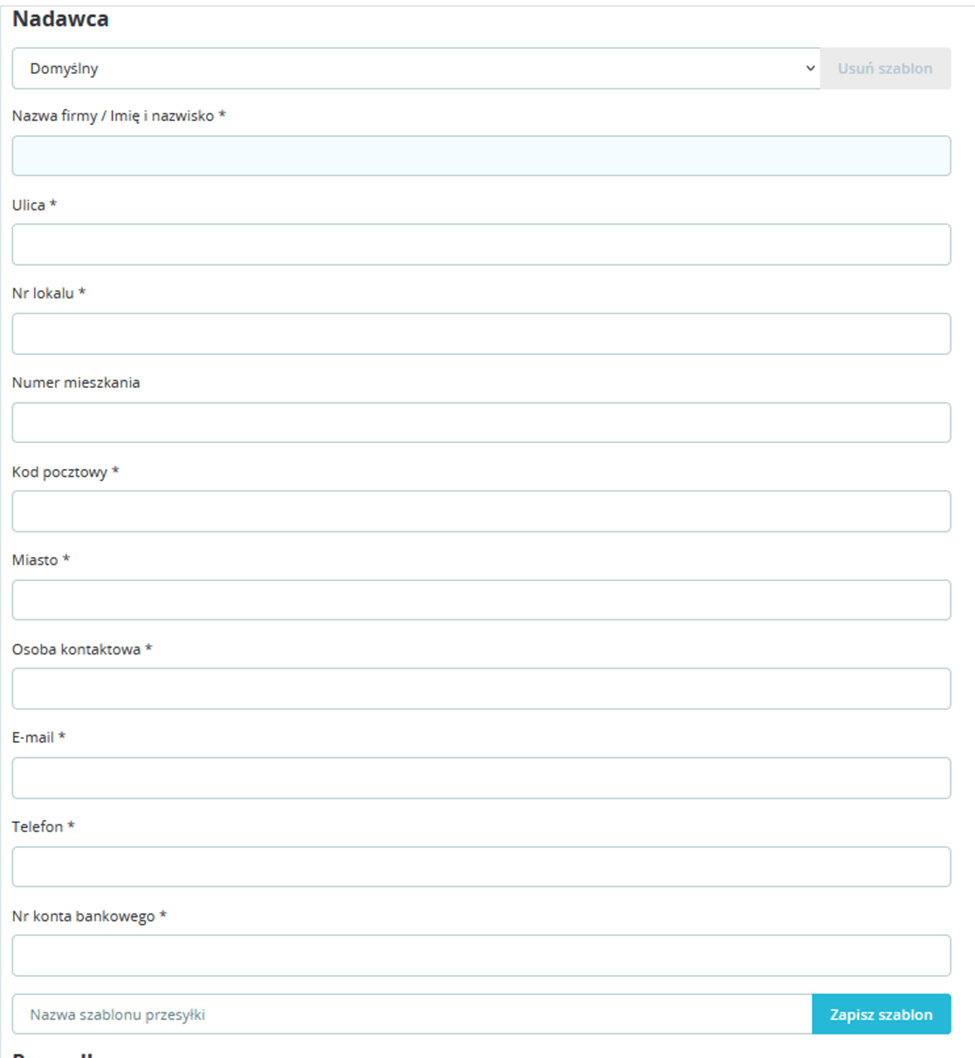 Do każdej sekcji ustawień danych nadawcy i danych przesyłki dodaliśmy pola oraz przyciski pozwalające utworzyć szablony danych.