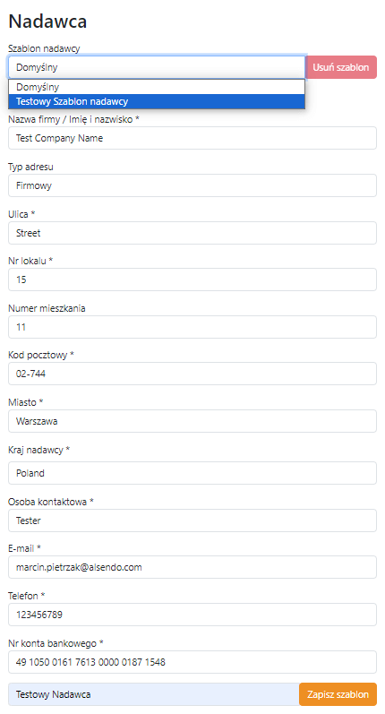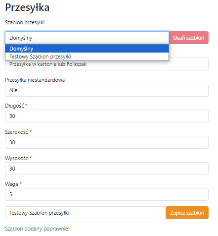 Szablon usuwa się poprzez jego wybranie z listy rozwijalnej i kliknięcie w przycisk „Usuń szablon”.