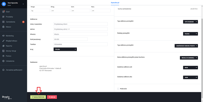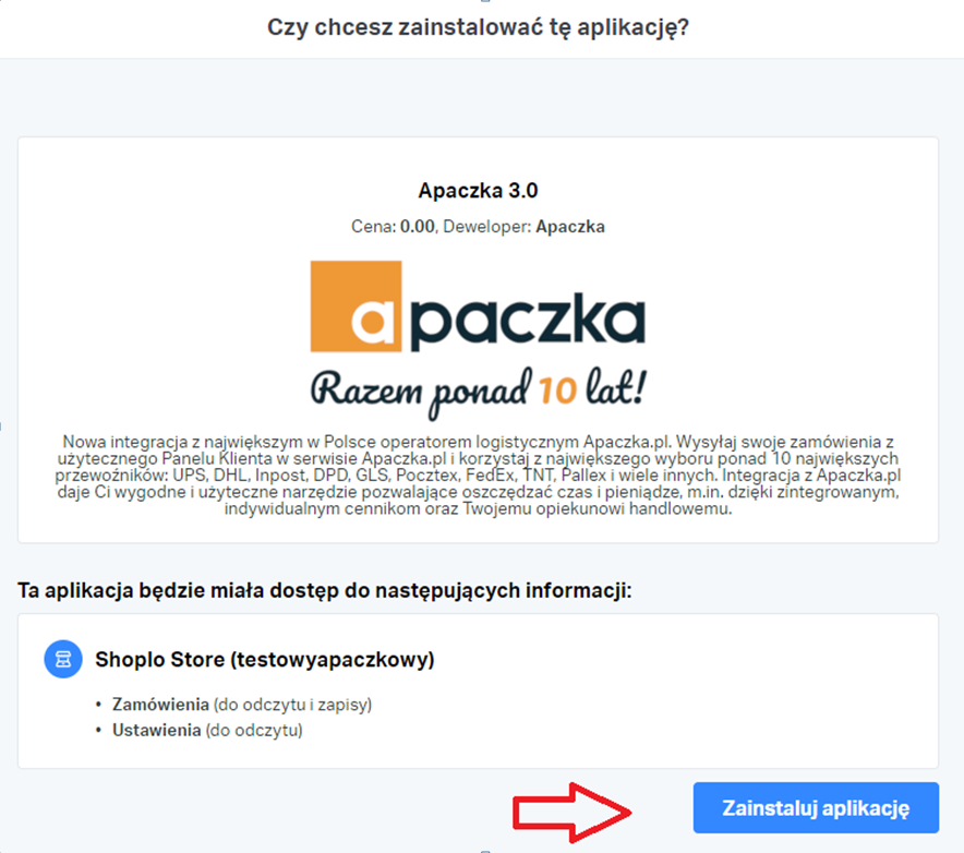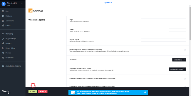 Gratulacje! Twój sklep Shoplo został pomyślnie zintegrowany z serwisem apaczka.pl. Możesz teraz nadawać przesyłki z poziomu panelu swojego sklepu.