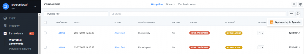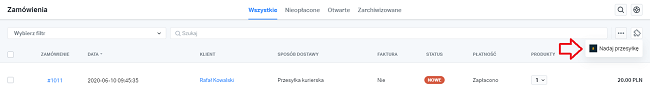 1. W zakładce Zamówienia, w prawym górnym roku kliknij ikonę Puzzle.