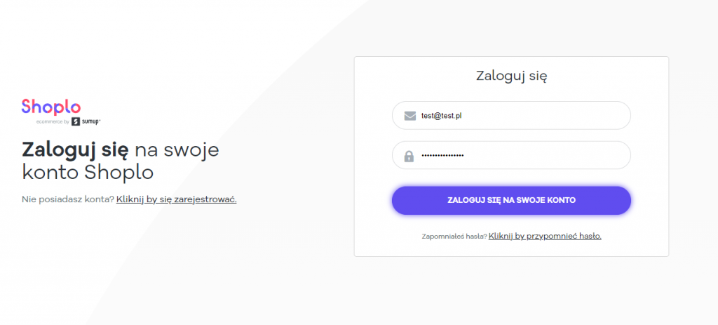 Zostaniesz automatycznie przekierowany do okna logowania w sklepie Shoplo.