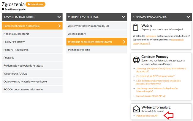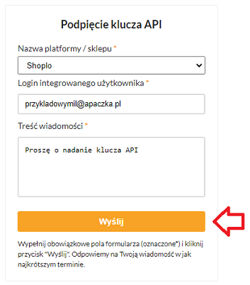 Aby nadawać paczki w serwisie apaczka.pl z poziomu sklepu Shoplo konieczne jest połączenie ich poprzez klucz API. Do bezpiecznej komunikacji wymagane jest wykorzystanie klucza API, który zostaje nadany po wysłaniu odpowiedniego Zgłoszenia.