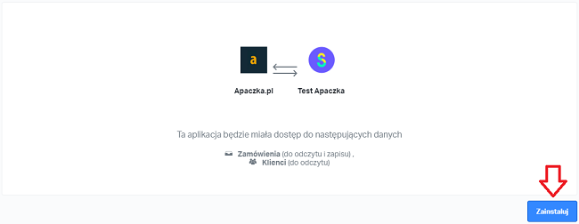 Strona zostanie ponownie przekierowana na Apaczka.pl. Jeżeli w sklepie widniały nowe zamówienia to zostaną one automatycznie zaimportowane.