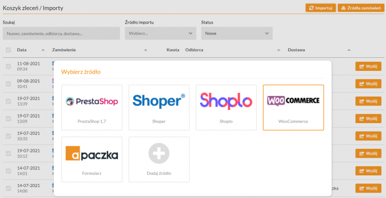 Utworzona integracja pozwala na import zamówień ze sklepu poprzez platformę Apaczka.pl. Aby dokonać importu wykonaj następujące kroki: