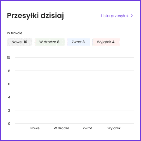 Dynamiczne wykresy pokazują bieżącą liczbę przesyłek, ich statusy i inne kluczowe dane – zawsze aktualne.