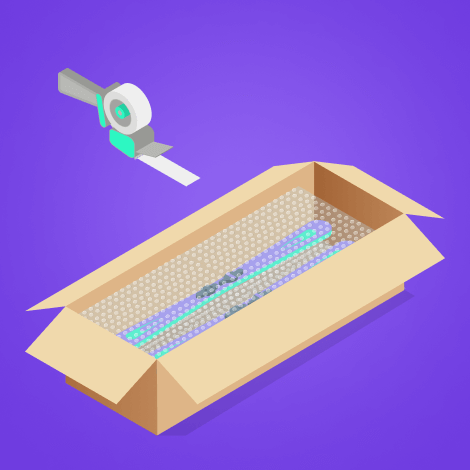 Zamknij kartonowe pudełko i zaklej je taśmą klejącą tak, żeby nie otworzyło się w trakcie transportu. Zwróć szczególną uwagę na zabezpieczenie ślizgów, wiązań i krawędzi. Pamiętaj, że to ty odpowiadasz za poprawne zapakowanie przesyłki: w przypadku uszkodzenia towaru i reklamacji, firmy kurierskie zawsze sprawdzają najpierw, czy przesyłka została poprawnie zabezpieczona do transportu.