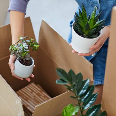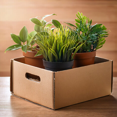 Przyklej dno doniczki do kartonu taśmą dwustronną, aby zapobiec jej przemieszczaniu się podczas transportu.