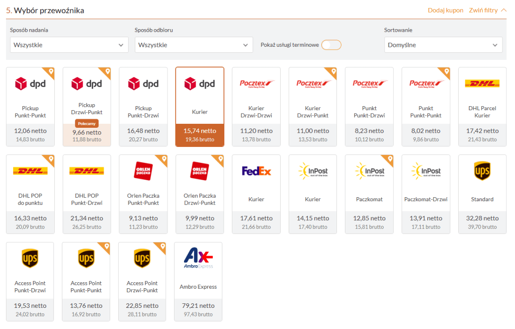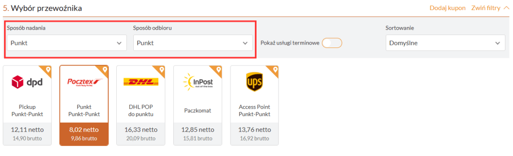 Jeśli zależy Ci na taniej wysyłce, zmiana opcji nadania z „drzwi-do-drzwi” na „punkt-do-punktu” może pozwolić Ci zaoszczędzić nawet kilka złotych. Przykład: Pocztex punkt-punkt to świetna opcja, jeśli chcesz obniżyć koszty.