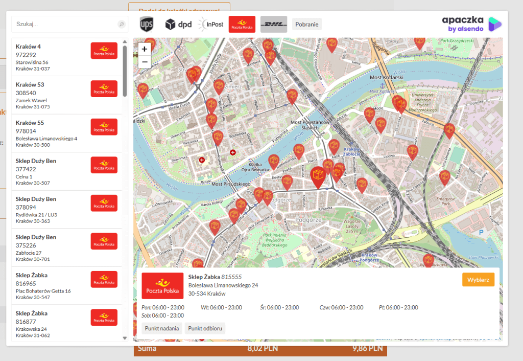 Jeśli wybierasz dostawę do punktu, przydatna będzie interaktywna mapka z tysiącami punktów odbioru, z których możesz wybierać.