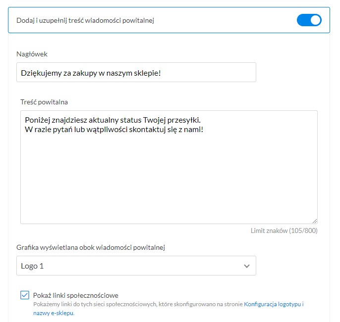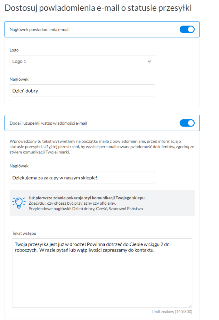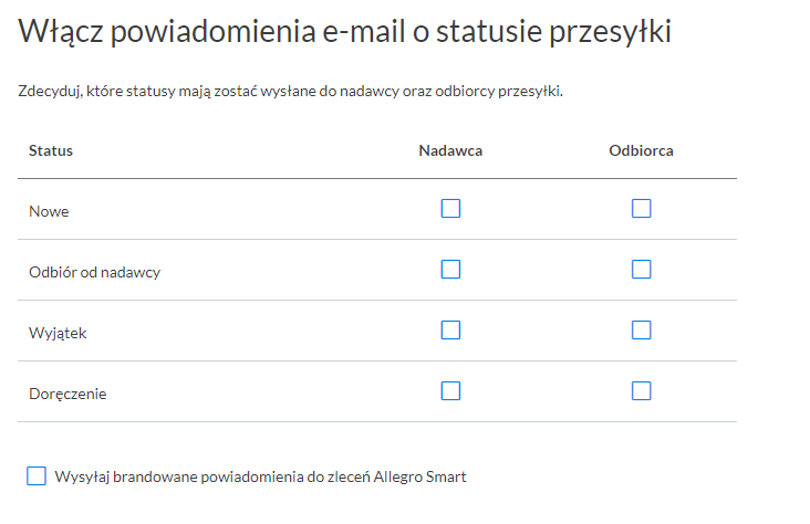 Pamiętaj, to Ty decydujesz jakie informacje pojawią się w powiadomieniach mailowych i na stronie śledzenia przesyłki.
