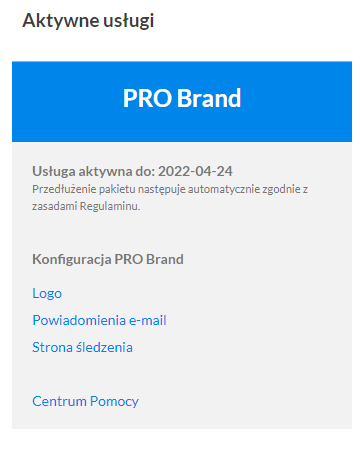 Załóż bezpłatne konto w naszym serwisie (instrukcję znajdziesz tutaj), następnie przejdź do zakładki Apaczka PRO w Panelu Klienta.W sekcji Wszystkie usługi PRO, znajdź PRO Brand i aktywuj pakiet klikając przycisk Wybieram. Pierwsze 14 dni jest całkowicie za darmo. Po dokonaniu zakupu, przejdź do punktu 3 i skorzystaj z dołączonej instrukcji konfiguracji.