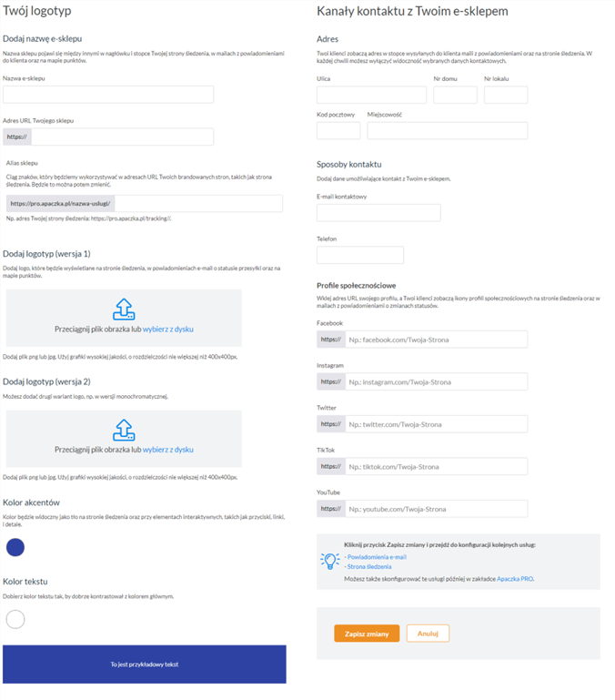 Ważne! By udostępnić stronę śledzenia swoim klientom uzupełnij link znajdujący się na górze strony wpisując swoją nazwę e-sklepu i udostępnij go w wybranym przez siebie miejscu.
