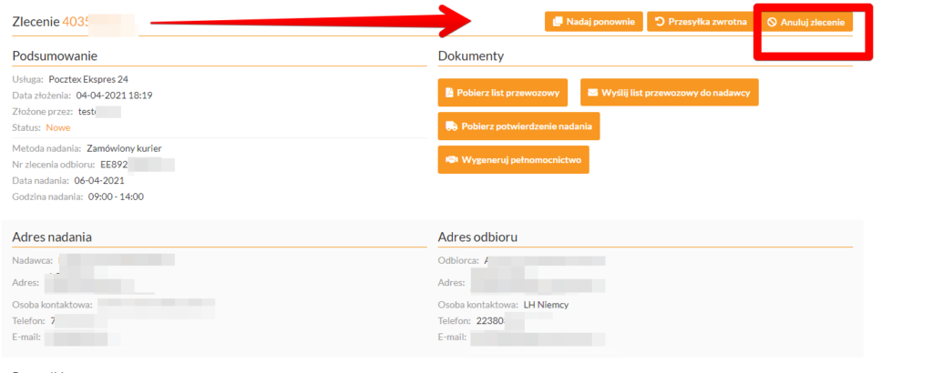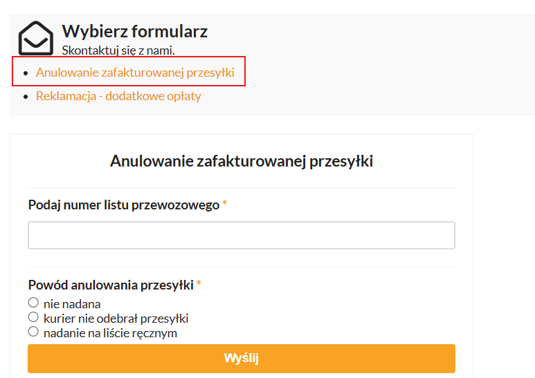 Jeżeli przesyłka została zafakturowana, tzn. masz naliczoną opłatę za nienadaną przesyłkę, a fizycznie nie została odebrana przez kuriera, bądź została odebrana na wypisanym ręcznie liście przewozowym, to w celu anulowania przesyłki należy: