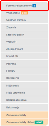 2. Wybierz zakładkę Formularz kontaktowy w menu bocznym.