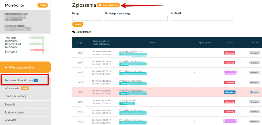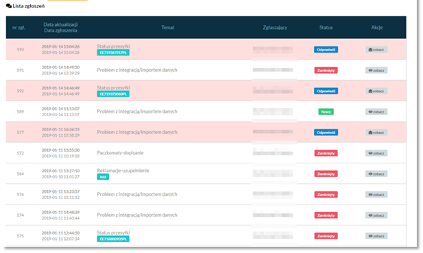 7. Po kliknięciu Wyślij Twoje zgłoszenie trafi na listę zgłoszeń, gdzie będziesz miał możliwość podglądu i zarządzania zgłoszeniem.