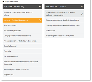 4. Wybierz kategorię i doprecyzuj temat zgłoszenia.