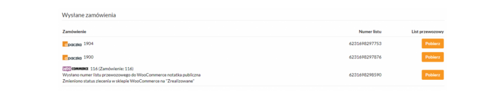 1. Po kliknięciu przycisku Wyślij zamówienia, zostaną wygenerowane przesyłki oraz możliwość pobrania listu przewozowego.
