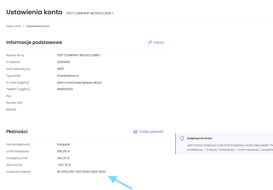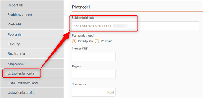Indywidualny numer rachunku znajduje się na każdej fakturze oraz jest widoczny w Panelu Klienta, w zakładce Moje ustawienia.