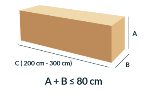 Paczki, których długość oraz obwód (obwód = 2 x szerokość + 2 x wysokość) łącznie wynoszą więcej niż 300 cm, ale nie przekraczają 400 cm, będą traktowane jako „Duża paczka”. Dla takich paczek obowiązuje minimalna waga podlegająca opłacie – 40 kg. Zostanie również naliczona opłata dodatkowa za dużą paczkę.