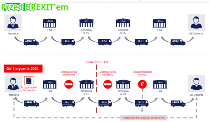 W przypadku firm nadających paczki z Polski do UK opłata graniczna wyniesie 5 EUR dla danej przesyłki (ok. 22 PLN). Dopłata paliwowa będzie doliczana po uwzględnieniu opłaty granicznej do Wielkiej Brytanii.