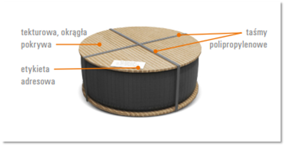 Powierzchnie opony powinny być zakryte, od góry i od dołu, okrągłymi pokrywami kartonowymi z otworami ułatwiającymi przenoszenie. Należy je zabezpieczyć i przymocować taśmą polipropylenową, która nie może zakrywać etykiety adresowej.