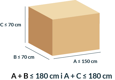 • Do 70 kg wagi rzeczywistej, powyżej tej wagi jest doliczana opłata za przesyłkę niestandardową,