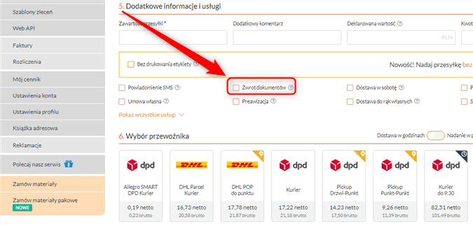 Zwrot potwierdzonych dokumentów jest jedną z popularniejszych usług dodatkowych. Zlecenie usługi może nastąpić najpóźniej w momencie odbioru przesyłki od nadawcy.