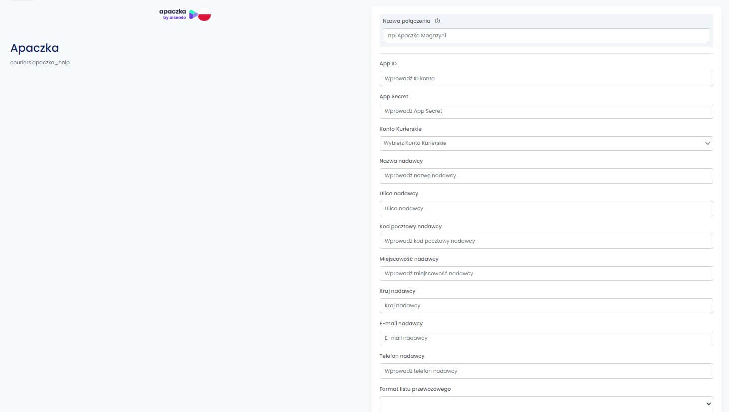 W polach App ID oraz App Secret podaj wygenerowane wcześniej klucze. W tym celu skopiuj je z Apaczka.pl.